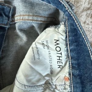 MOTHER High Waisted Rider Skimp Jeans in Blue