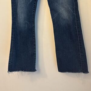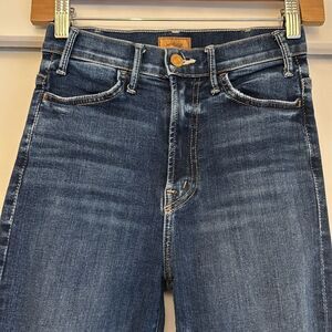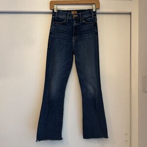 MOTHER Hustler Ankle Fray Flare Jeans Teaming Up Dark Wash Blue Denim Size 24