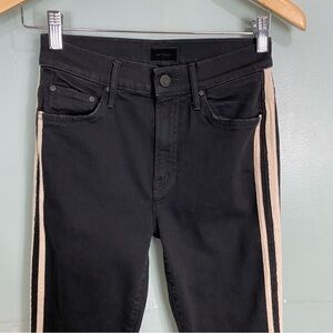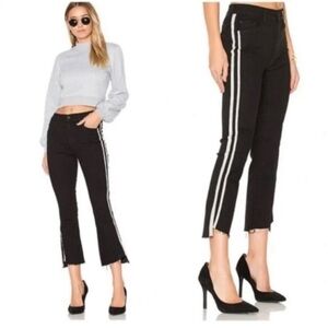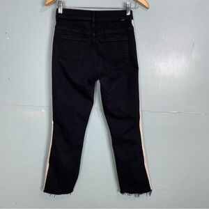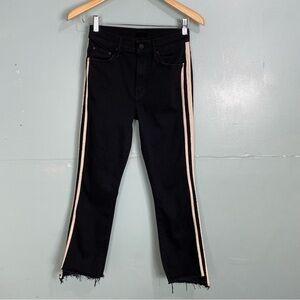 MOTHER Insider Crop Step Fray Guilty Racer Stripe Ankle Fray Black Jeans Sz 25