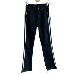 MOTHER Jeans 24 The Insider Crop Step Hem Guilty Stripe Black White