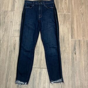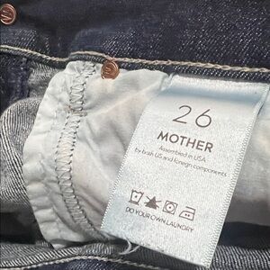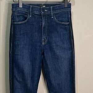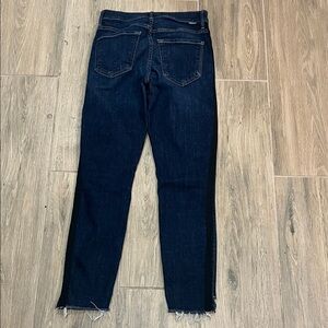Mother jeans. Size 26. Stunner zip ankle step fray sweeping racer. These have black stripes of material down the sides. These look to be in great shape to me.