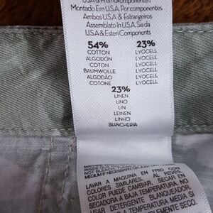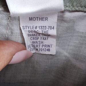 MOTHER Jeans Womens Size 31 Green Camo Stripe Linen Blend SHAKER CHOP CROP FRAY