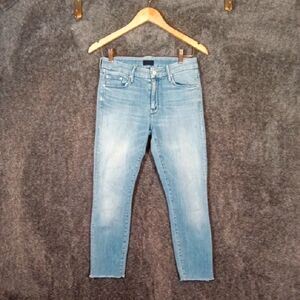 These MOTHER skinny jeans in a classic blue shade offer a sleek and modern fit that enhances....there in good condition no stains or holes. measurements are in the listing.. AS seen on kendal Jenner..
