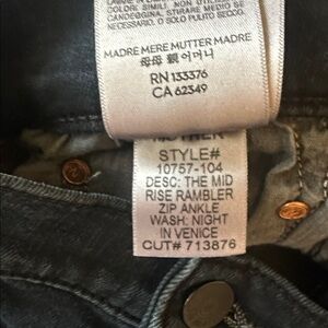 MOTHER mid rise Rambler Jean in a mid rise. Zip fly. Wash is a faded black denim that looks perfectly lived in.