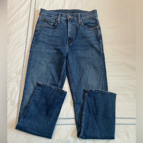 Experience timeless style with these MOTHER straight jeans in a rich blue hue. Crafted from high-quality denim, they offer a clean and smooth texture for a polished look. Ideal for everyday wear, these jeans provide a comfortable and classic fit.