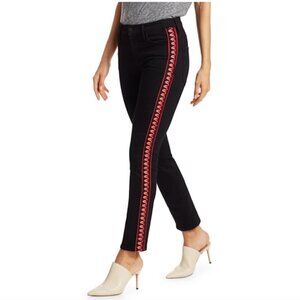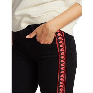 MOTHER Mid-Rise Slim-Fit Straight-Leg Embroidered-Side Jeans in ¨Up in Flames¨