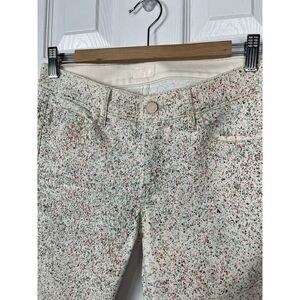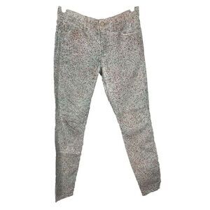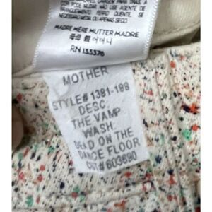 Elevate your denim game with these stunning Mother skinny jeans in Dead On The Dance Floor The Vamp design. Featuring a unique paint splatter pattern, these jeans are made from a blend of 78% cotton, 20% polyester, and 2% elastane for a comfortable, machine washable fit. The jeans have a mid-rise waist with a 28-inch size, a zip and button closure, and a 5-pocket design with a slit feature.