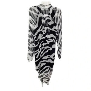 Silk, zebra, mini, animal print, vacation, dinner, beach, chiffon, long sleeve, ruched