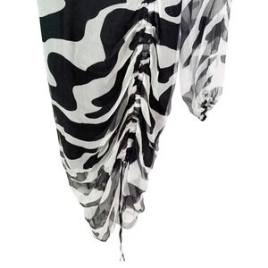 MOTHER OF ALL Vera Ruched Long Sleeve Silk Dress Black and White size 8/10 NWT