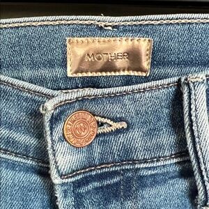 Mother jeans patch pocket, small hole, see photo. Not noticeable when on. Could probably be easily fixed with a few stitches.