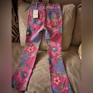 Bold floral pants with vibrant pink and blue tones. Eye-catching design for standout style. They are supposed to be ankle length but if short they will be regular length. New with tags