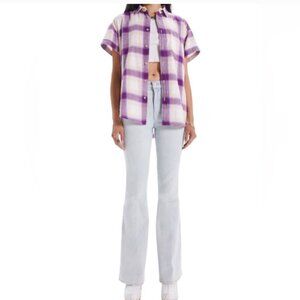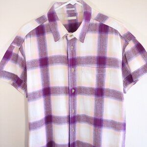 Short Sleeve Plaid Flannel Shirt ' Paying in Sand Dollars ' Shades of Plaid Purple, Pink, Tan Boxy Fit | Soft Woven Cotton | Chest Patch Pocket Drop Shoulder | Perfect for Layering Excellent Pre-Loved Condition. No flaws to note Women's Size Small ~ Relaxed Fit PTP 22" Length 27" Casual Preppy Collegiate Boho Plaid Country Chic Western Rodeo. Nature. Hiking. Camping. Cabin Couture. Skater.