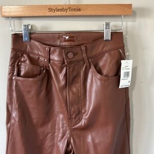 MOTHER Rail Faux Leather Skimp Friar Brown Pant Jean High Waisted Sz 25 NEW