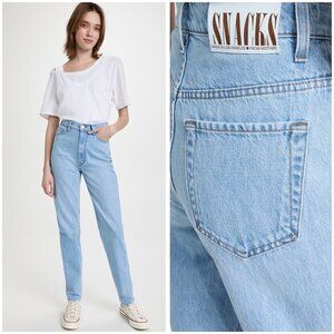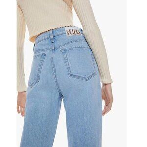 Gimme a taste. A straight-leg jean from SNACKS!, MOTHER's homage to throwback styles of the 80s and 90s, reimagined for a new generation. The high-rise jeans feature a slightly v-shaped waistband, loose fit and long 31-inch inseam. Made from rigid 100% cotton, Just A Nibble is a faded light blue wash that channels the nostalgia of snack time with a pretzel-detailed button and candy-inspired interior rivets.