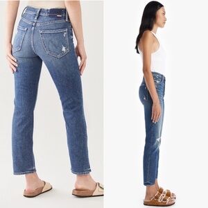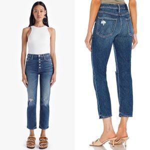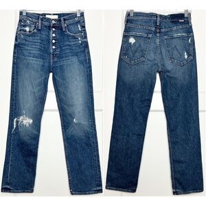 MOTHER SUPERIOR 90s High Rise Distressed Button Fly Ankle Crop Straight Jeans 26