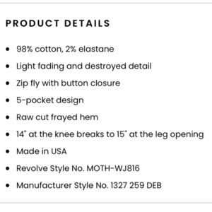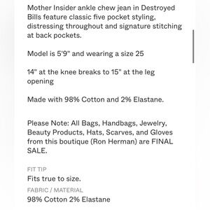 MOTHER SUPERIOR INSIDER CROP STEP CHEW IN DESTROYED BILLS HIRISE STRAIGHT LEG