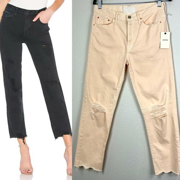 MOTHER SUPERIOR | NEW The Saint Fray in Peach Distressed Light Pink Orange Jeans 29