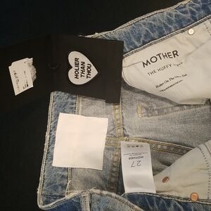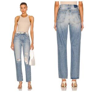These MOTHER jeans have a fit that's relaxed but not too slouchy, and are heavily broken in with significant fading and shredded holes.