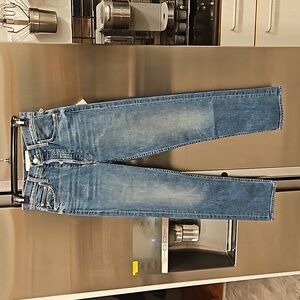 You rock. The brand''s bestselling high-rise straight leg with a button fly and an ankle-length inseam. Cut from semi-rigid SUPERIOR denim, Kneeling On Stones is a mid-blue hue with whiskering and fading.