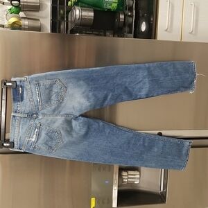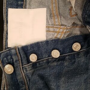 Vintage Blue Wash Denim with Whiskering, Fading and Distressed Accents