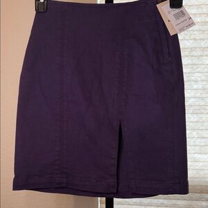 MOTHER side splitting mini skirt in deep purple. Sleek design with front slit. Perfect for stylish outings. BRAND NEW WITH TAGS