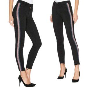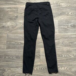 MOTHER Size 28 High Waisted Looker Ankle Fray Quilty Glitter Racer Jeans Black