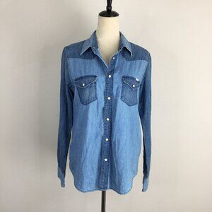 MOTHER Snap Button ALL My EX'S Picking Up The Piece Long Sleeve Chambray Shirt