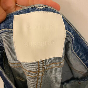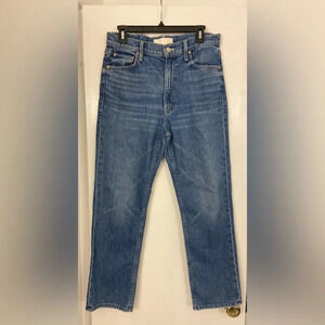 MOTHER Superior Denim High Waisted Rider Ankle Running with Scissors Blue 30. Excellent pre-owned condition. There is a small area of what looks like wear near the bottom of the zipper, however they were purchased that way.