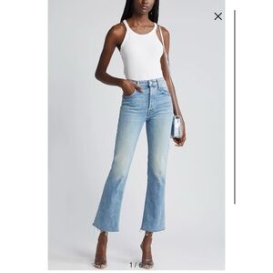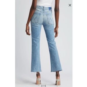 MOTHER Superior The Tripper Flood Fray Jeans Left in Dust Flare Denim Blue 26