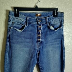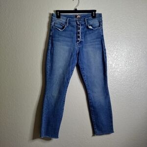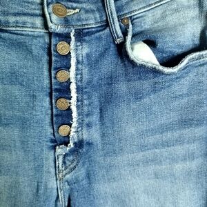 MOTHER THE FLY CUT STUNNER ANKLE FRAY NIGHT ON A SHINY WHITE VESPA sz 28