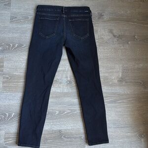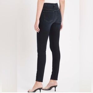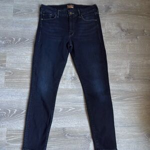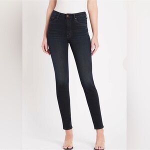 Mother denim high waisted Looker is a classic skinny jean with a waist flattering 10" rise. Coffee, Tea, Or Me? is a deep navy wash with a luxuriously soft hand and ultra stretch comfort. This style features mild fading and slight whiskering on the front pockets. Made in Los Angeles.