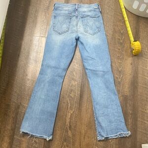MOTHER THE OUTSIDER ANKLE CHEW IN POISONED PETALS HIGH WAISTED FLARE LEG RAW HEM