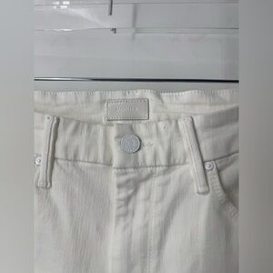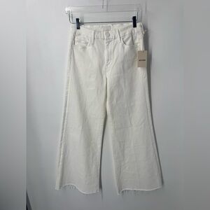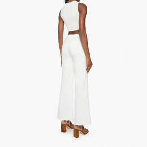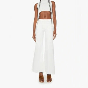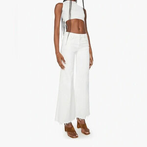 A real cliffhanger. This iconic high-waisted wide leg has a 31-inch inseam and a frayed hem. Cut from stretch denim, Fairest Of Them All is our bestselling white denim.