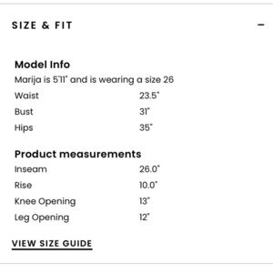 These are a size 25 but could easily fit up to a size 28, please see measurements and pay attention to the amount of stretch in these. They honestly feel like pajamas but look like a million bucks!!