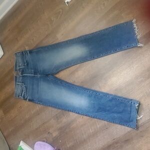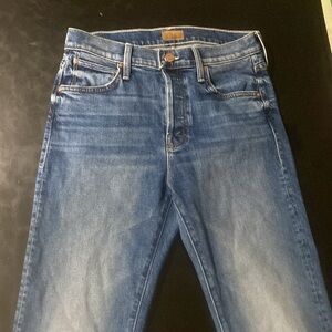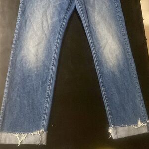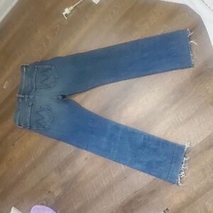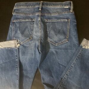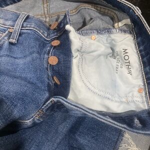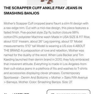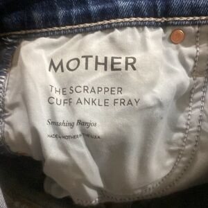 MOTHER THE SCRAPPER CUFF ANKLE FRAY IN SMASHING BANJOS BUTTON FLY HI RISE SZ 25