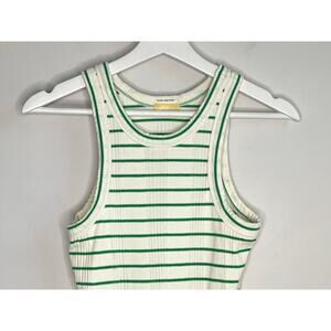 MOTHER The Chin Ups High Road Striped Green & White Bodysuit Women's Size S
