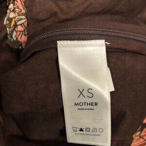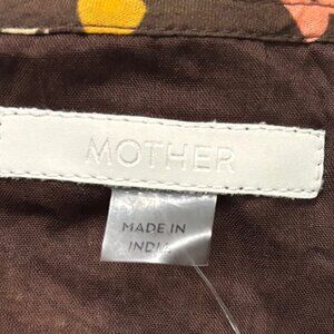MOTHER The Cinch Top XS Brown Floral Puff Sleeve Ruched Front Lightweight Blouse