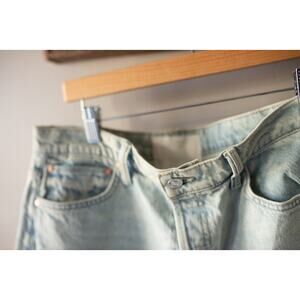 Cropped jeans with a button fly, slouchy straight leg and relaxed fit that's designed to sit on the hips. Cut from semi-rigid SUPERIOR denim, Resting Beach Face is a light-blue wash with fading, whiskering and distressed details. Looks can be deceiving.
