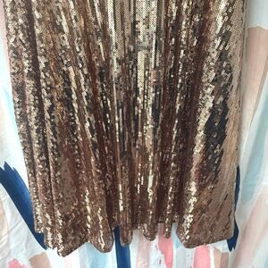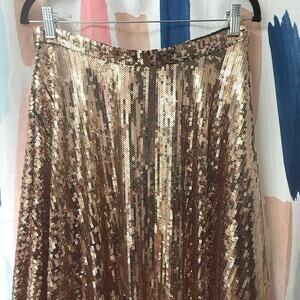 Rise and shine. A flowy midi skirt with a high rise, loose fit and calf-grazing hem. The Going 'Round Skirt in All That Glitters is detailed with metallic gold sequins throughout.