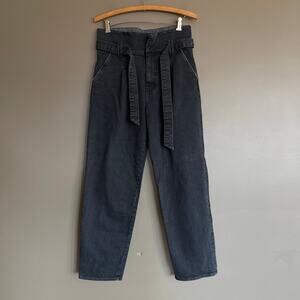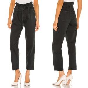 MOTHER The Greaser Paperbag Pleat Jean Black Size 24 High Waisted Straight Leg