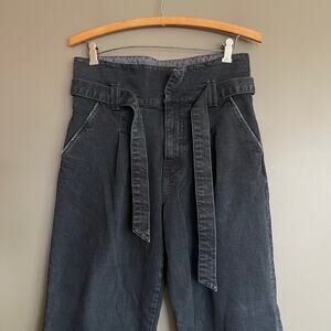 MOTHER Superior The Greaser Paperbag Pleat in The Devil May Care, Faded Black Deep Grey Color, Size 24, High Waisted, High Waist, High Rise, Straight Leg, Relaxed Fit, Paperbag Silhouette, Excellent Condition with No Flaws.