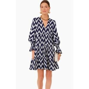 81% cotton, 11% lyocell, 6% poly, 2% elastane. Made in USA. Machine wash. Hidden side zipper closure and halterneck button closure. 4-pocket design. Attached waist tie belt. Faded denim fabric with surplice front.