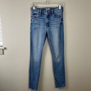 MOTHER The High Waisted Looker Ankle Fray Jeans in Au Revoir Wash