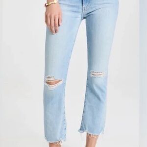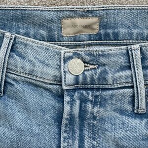 Worn twice, great condition, no stains. Mother Denim The Hustler Ankle Chew Jeans Size 27 26” inseam Fabric: Mid-weight, stretch denim Fading and whiskering Raw cuffs and distressed edges Ankle length Button closure and zip fly Slant front pockets and patch back pockets Shell: 81% cotton/11% lyocell/6% polyester/2% elastane Wash cold Made in the USA of imported materials