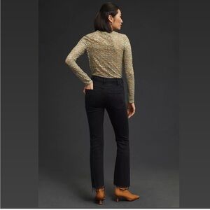 Featuring a cropped ankle-length inseam in a classic black wash. We are obsessed with that flattering high rise, the stretchy composition that's comfortable enough for all-day everyday wear, and the classic kick flare silhouette with a frayed hem. Ideal for any occasion regardless of season, these pair easily with tees, sweaters, blazers, and more for a fresh and chic look — so go ahead and add them to your outfit rotation!