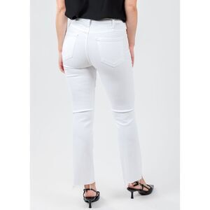 Get ready to turn heads with this bestselling high-rise flare made from stretch fabric. With its ankle-length inseam and raw hem, The Hustler Ankle Fray Jeans in Fairest Of Them All is the perfect addition to your denim collection. Show off your style in MOTHER denim's top-selling white jeans!