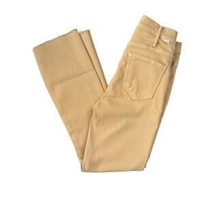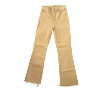 MOTHER The Hustler Ankle Fray Mustard Yellow High Rise Flare Jeans Size 25x26