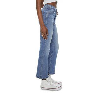 Honk for MOTHER nature. This high-rise skinny-flare has an ankle-length inseam and a clean hem. Cut from semi-rigid denim, Scenic Route is a mid-blue wash with whiskering, fading and distressed details.