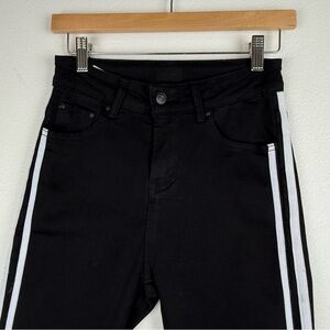 High Rise Insider Crop Step Fray Hem Jeans in Guilty Racer Stripe by MOTHER Denim. Leave 'em in the dust when you wear these MOTHER cropped jeans, which offer a nod to vintage track pants with sporty two-tone stripes.