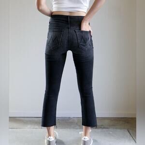 Night Hawk Wash (charcoal washed black) The Insider Crop Step Fray Jeans from MOTHER. zip fly, fray hem. 84% cotton 10% modal 4% poly 2% elastane. VGUC but light puckering near crotch from washing - not noticeable when wearing.